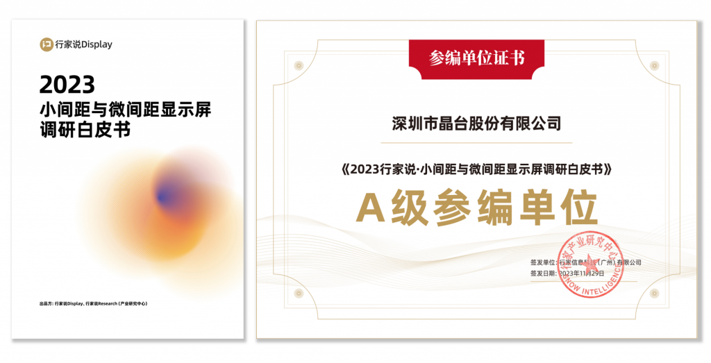 同期,由kinglight晶臺作為主要參編企業參與撰寫的《2023小間距與微間距顯示屏調研白皮書》正式發布,白皮書聚焦過去一年多來產業的發展新變化,對整個行業的發展現狀、產能、產品特點、技術動向及發展趨勢等熱點話題進行了全面詳細梳理和深入剖析。