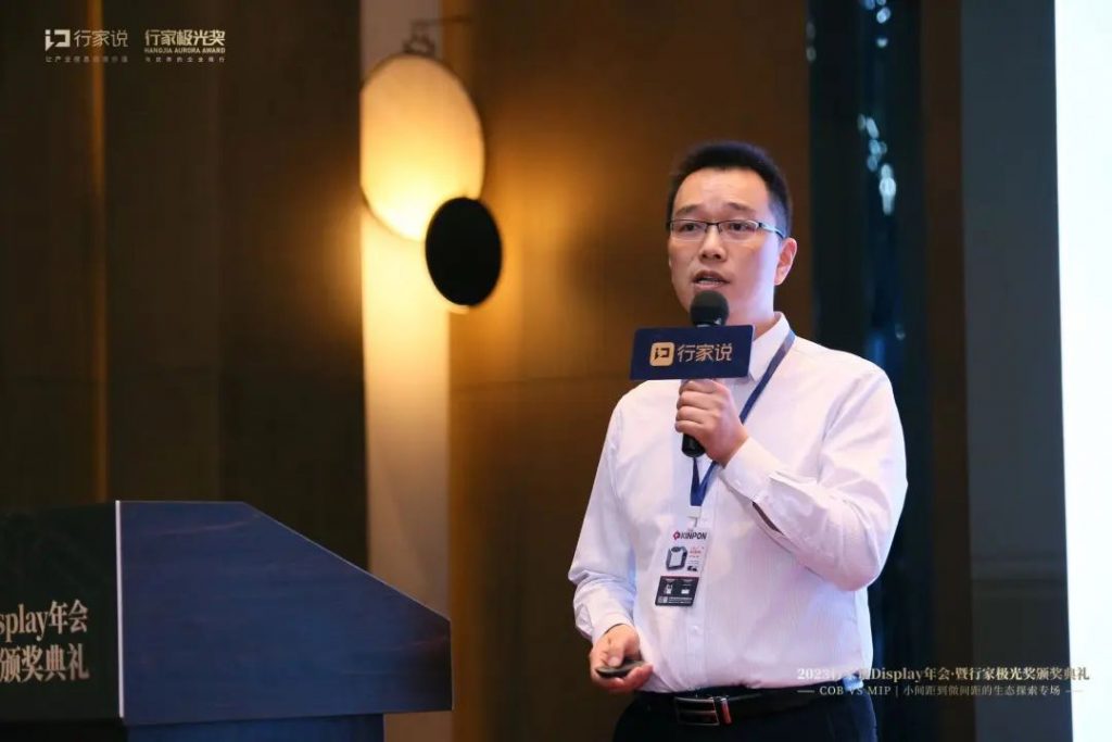 年會活動主題演講環節中,kinglight晶臺封裝事業部研發總監嚴春偉帶來了《LED顯示技術發展趨勢及難點分析》的主題報告,就LED顯示技術發展趨勢與痛點,全方位解析kinglight晶臺的MIP技術和新場景差異化產品。