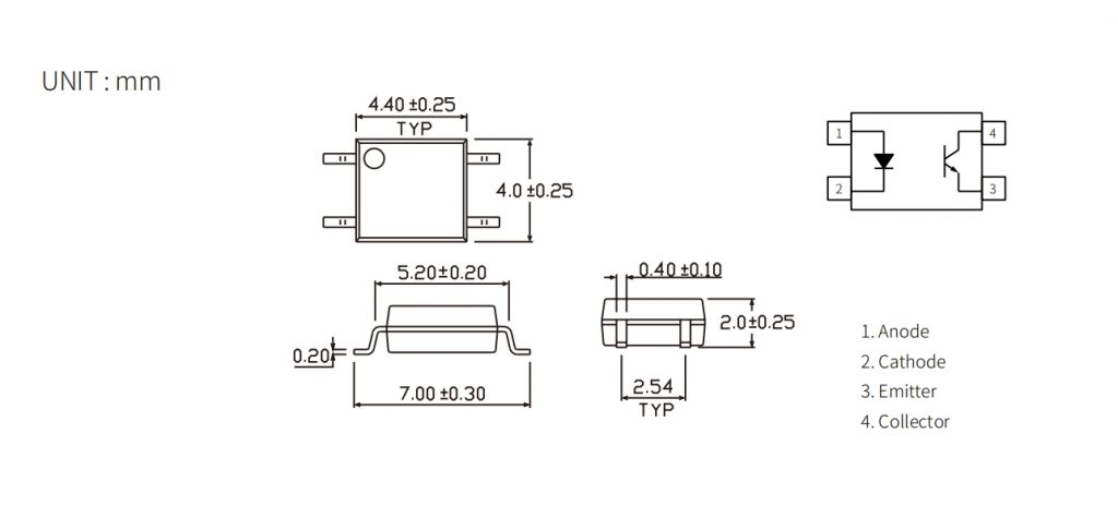 KL357NHB | SOP4 | 4.4x4.1x2.0 | 1.2 | 80 | 0.3 | 5 | 130~260 | 6 | 8 | - | - | -55 | +125 | 3750 |