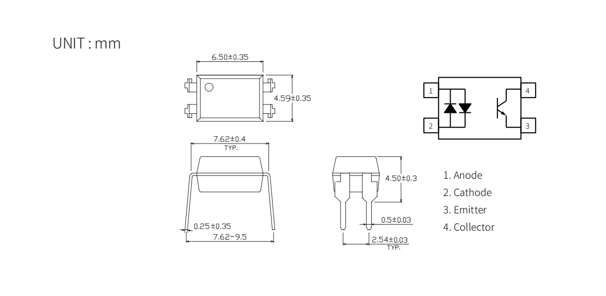 KL814 | DIP4 | 6.5x4.58x3.5 | 1.2 | 80 | 0.2 | ±1 | 20~300 | 18 | 18 | - | - | -55 | +110 | 5000 |