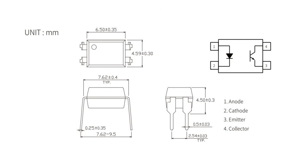 KL817HB | DIP4 | 6.5x4.59x3.5 | 1.2 | 80 | 0.35 | 5 | 130~260 | 6 | 8 | - | - | -30 | +125 | 5000 |