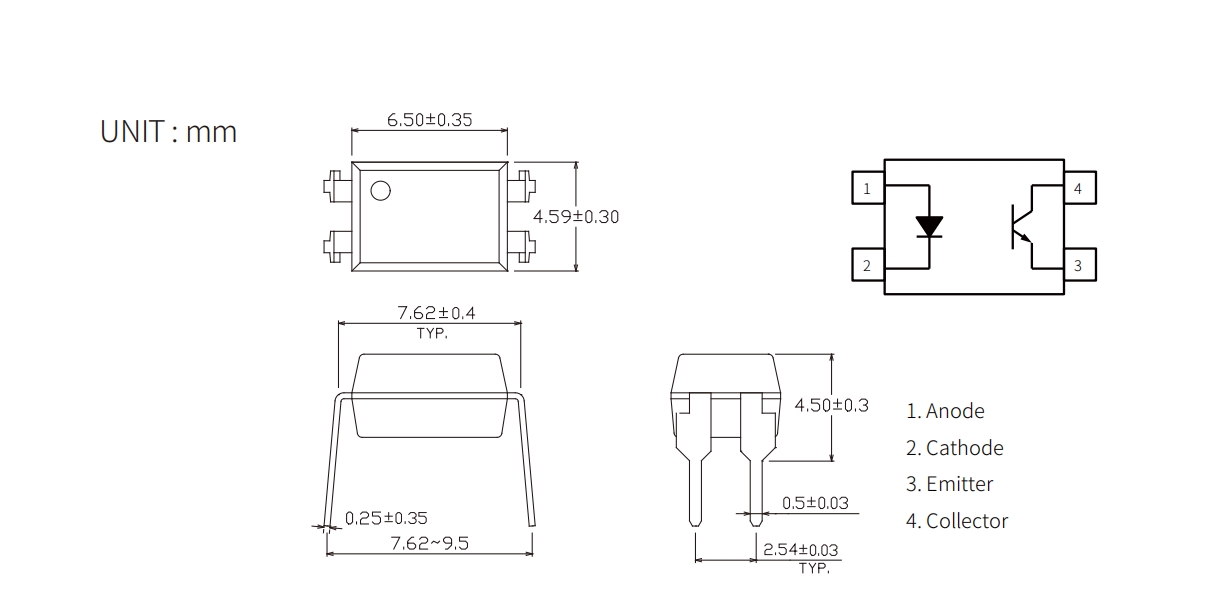 KL851 | DIP4 | 6.5x4.58x3.5 | 1.2 | 350 | 0.4 | 5 | 50~600 | 4 | 5 | - | - | -55 | +110 | 5000 |